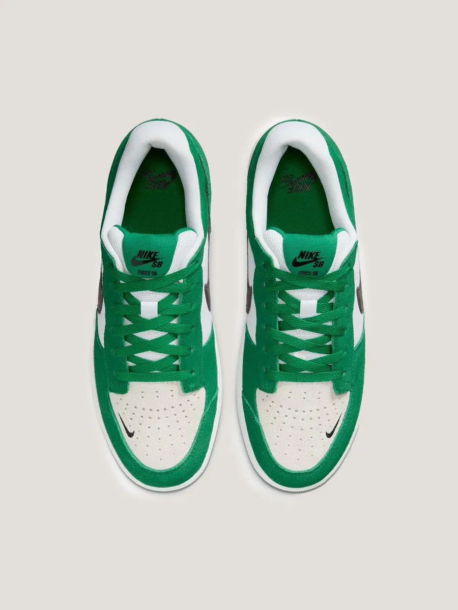 El Force 58, la mayor y más reciente innovación que llega a las calles, aporta la durabilidad de la suela cupsole y la flexibilidad del calzado vulcanizado. Está confeccionado con lona y gamuza y luce un acabado con perforaciones en la punta: todo el look irradia el ADN del básquetbol de herencia.BeneficiosLa gamuza y la lona son la combinación perfecta de durabilidad y transpirabilidad.Las perforaciones y el Swoosh en la punta hacen alusión al estilo del básquetbol de herencia.La suela de goma cuenta con una costura que rodea toda la suela tipo cupsole, lo cual brinda durabilidad excepcional.Las formas tri-star de la suela se dilatan y se contraen para favorecer el agarre y el contacto con la patineta desde el principio.El refuerzo interno elástico se ciñe al pie para retener el calzado, aunque se suelten las agujetas.
